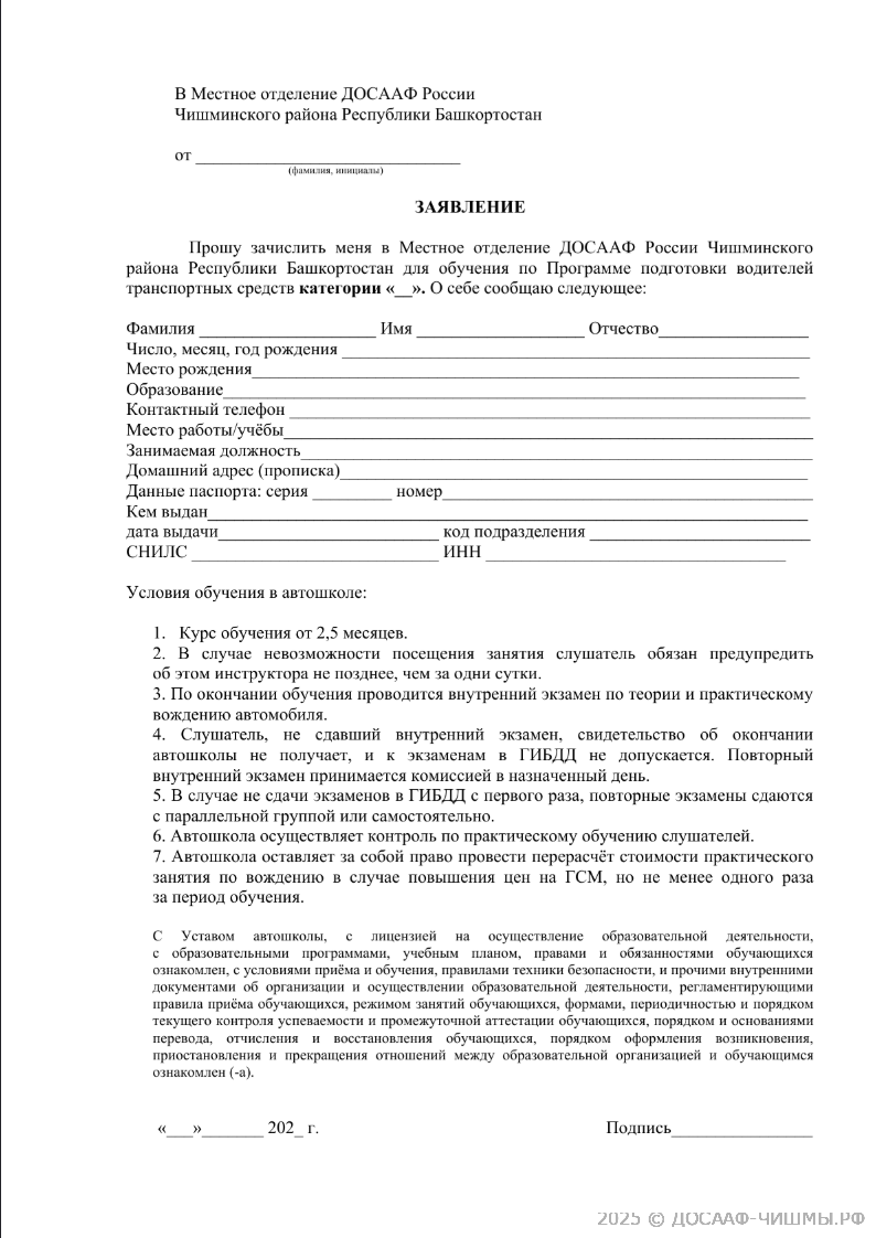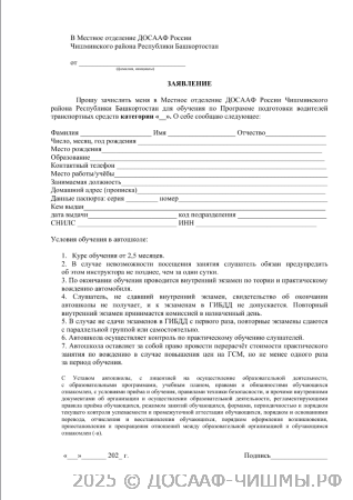 Заявление на обучение
